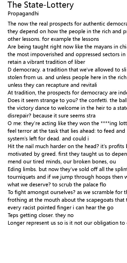 To fight amongst ourselves? as we scramble for the crumbs they spit out, frothing at the mouth about the scapegoats that they've chosen for us. with every racist pointed finger i can hear the go |