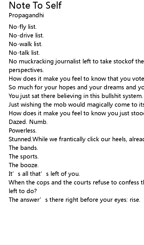 | Song | Note To Self |
