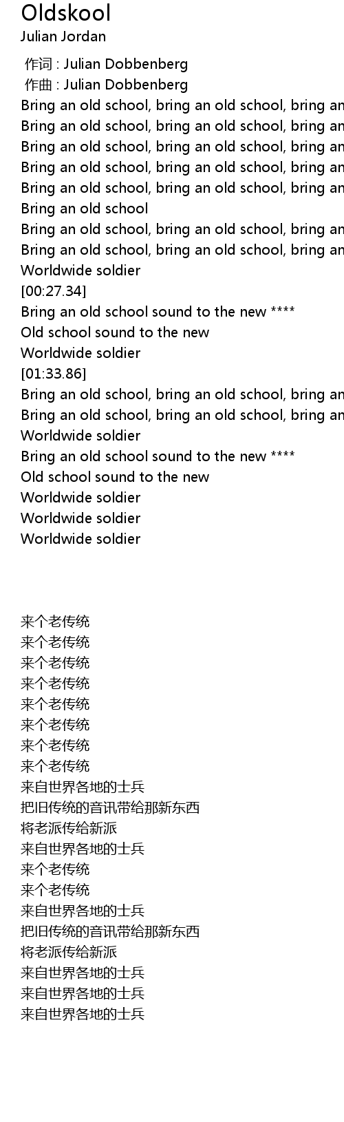 | [00:01.67] | Bring an old school, bring an old school, bring an old school |