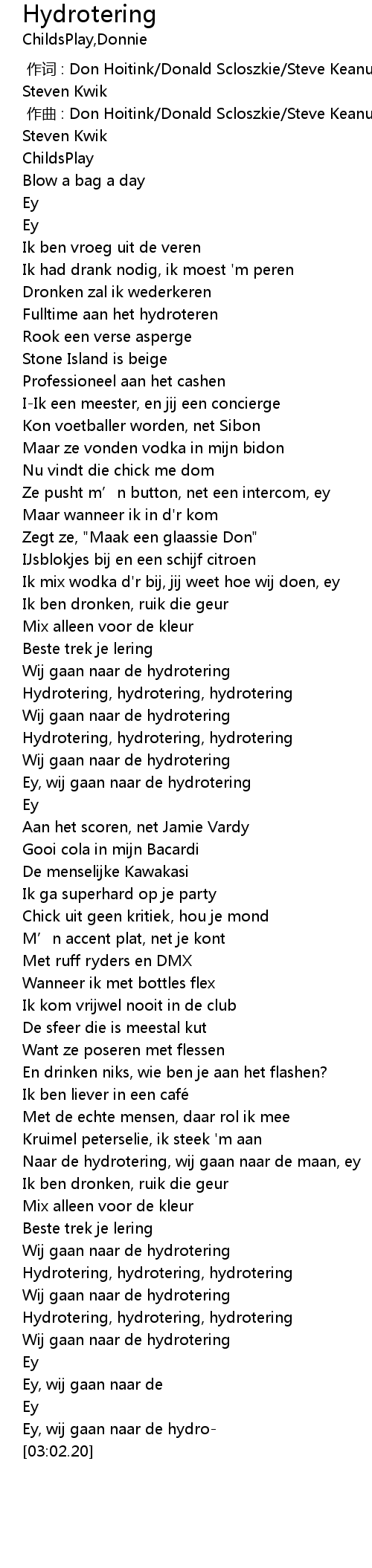 | [02:59.14] | Ey, wij gaan naar de hydro |