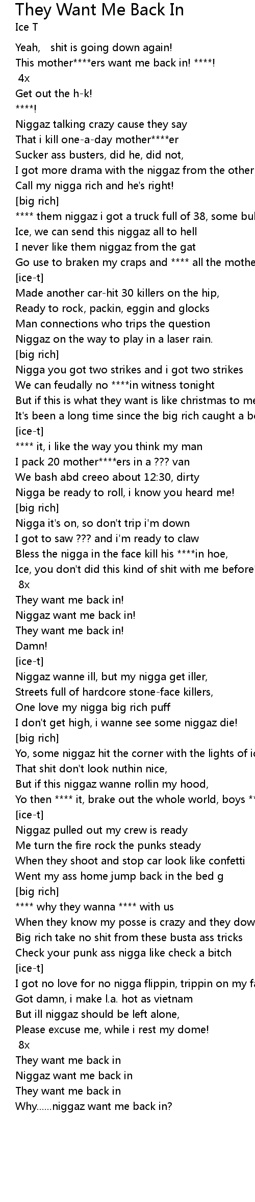 | This mother****ers want me back in! ****! | |