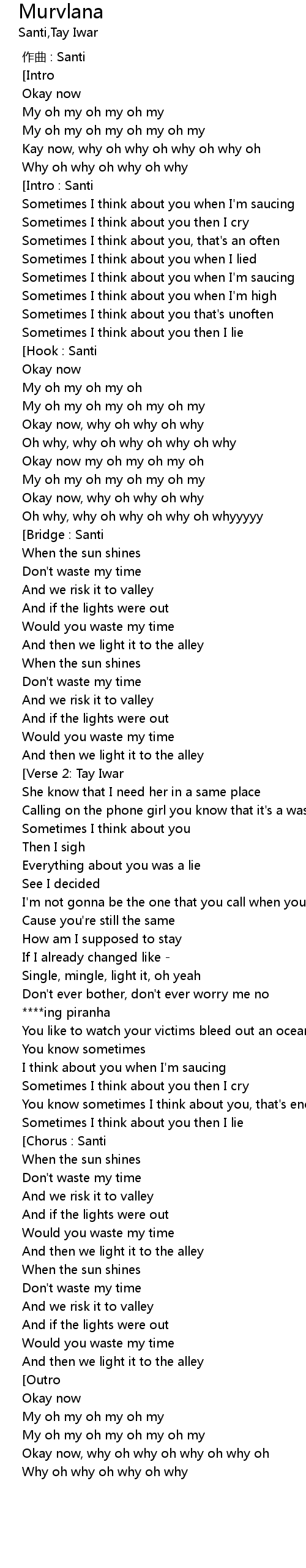 | [00:35.589] | Sometimes I think about you when I'm saucing |