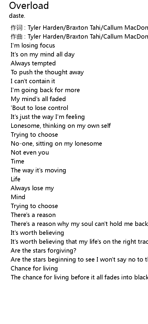 | [00:01.000] | zuo qu : Tyler Harden Braxton Tahi Callum MacDonald |