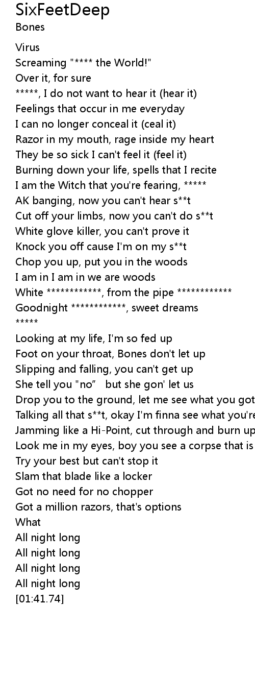 | [00:59.71] | Foot on your throat, Bones don't let up |