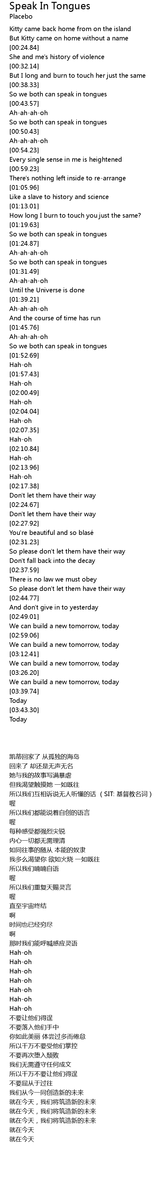 | [00:40.95] | So we both can speak in tongues |