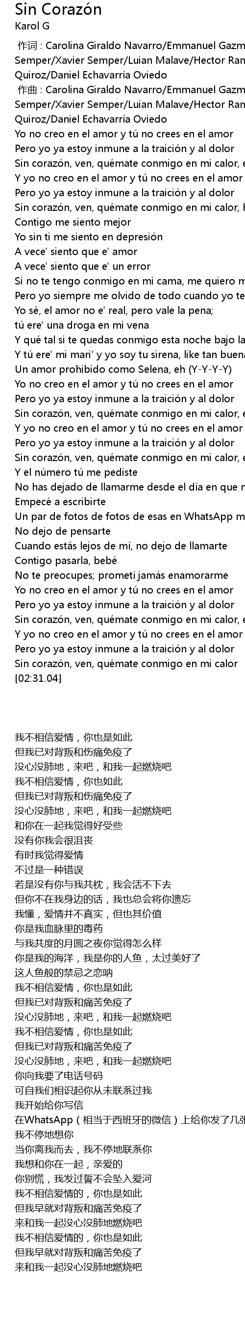 | [02:18.33] | Y yo no creo en el amor y tu no crees en el amor |