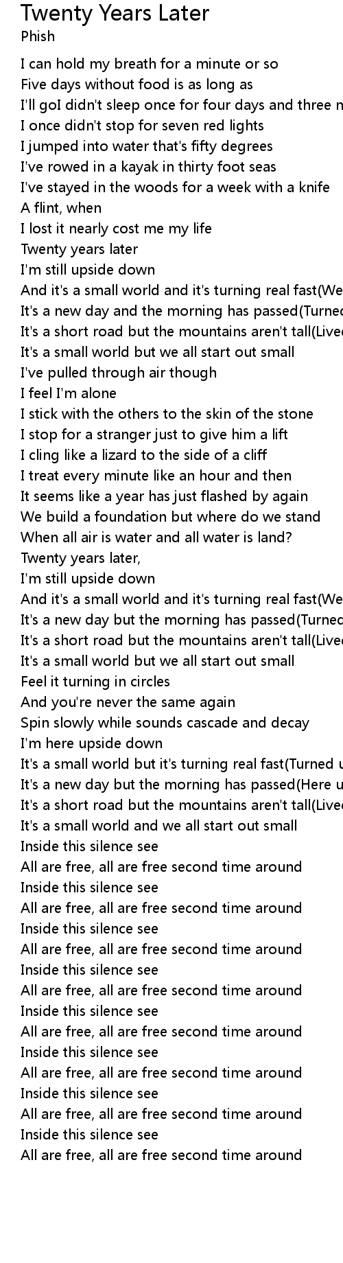 | Twenty years later | |