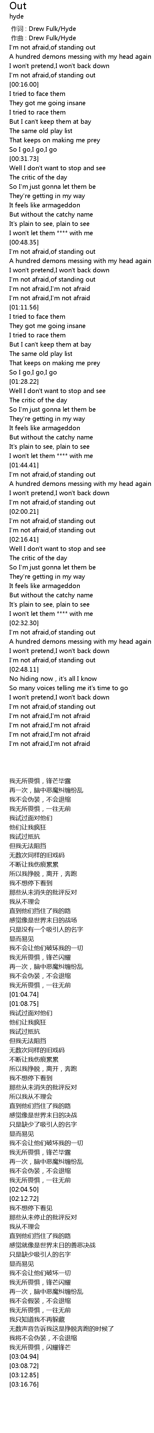| [00:00.000] | 作词 : Drew Fulk/Hyde |