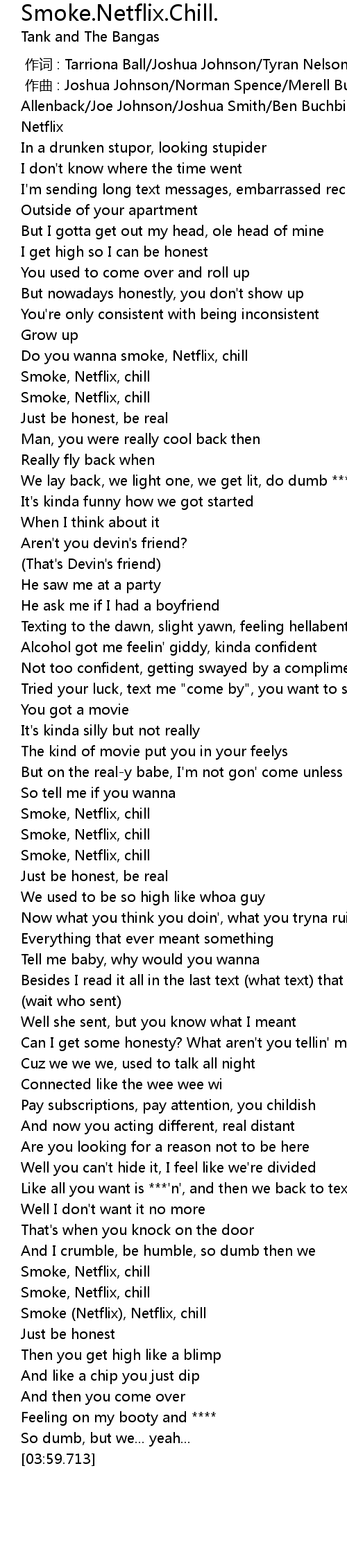 | [03:28.444] | Smoke Netflix, Netflix, chill |