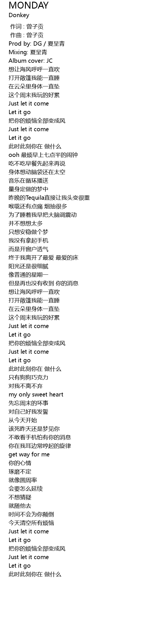 | [00:01.215] | Prod by: DG / 夏呈青 |