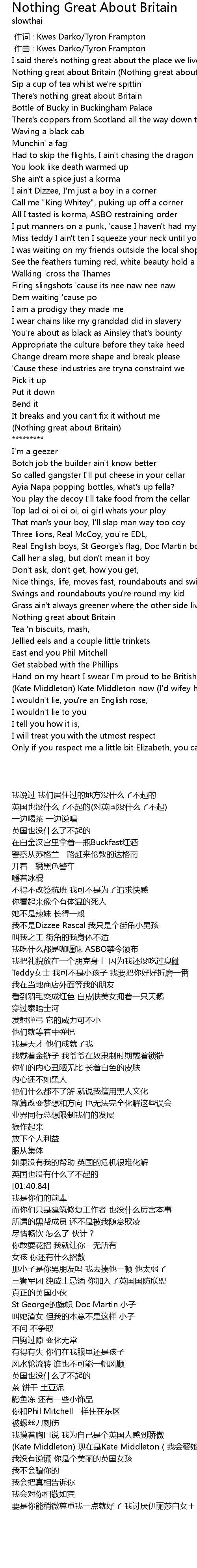 | [01:38.69] | Nothing great about Britain |