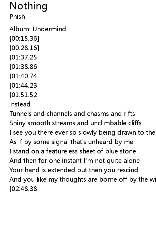 | [00:36.90][01:37.25][02:16.21] | Nothing's ensconced |