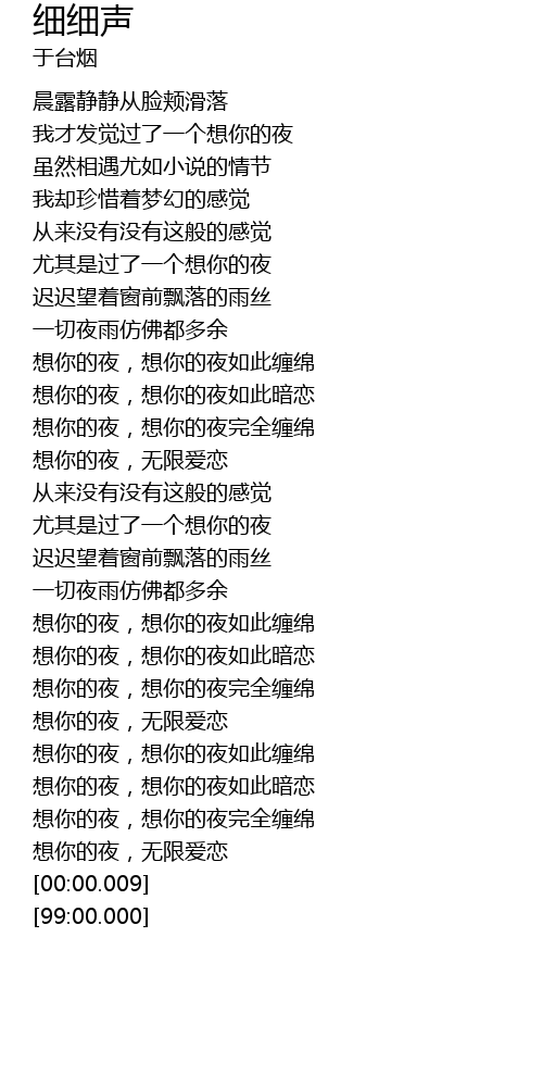 | [02:41.26] | 想你的夜,想你的夜如此缠绵 |