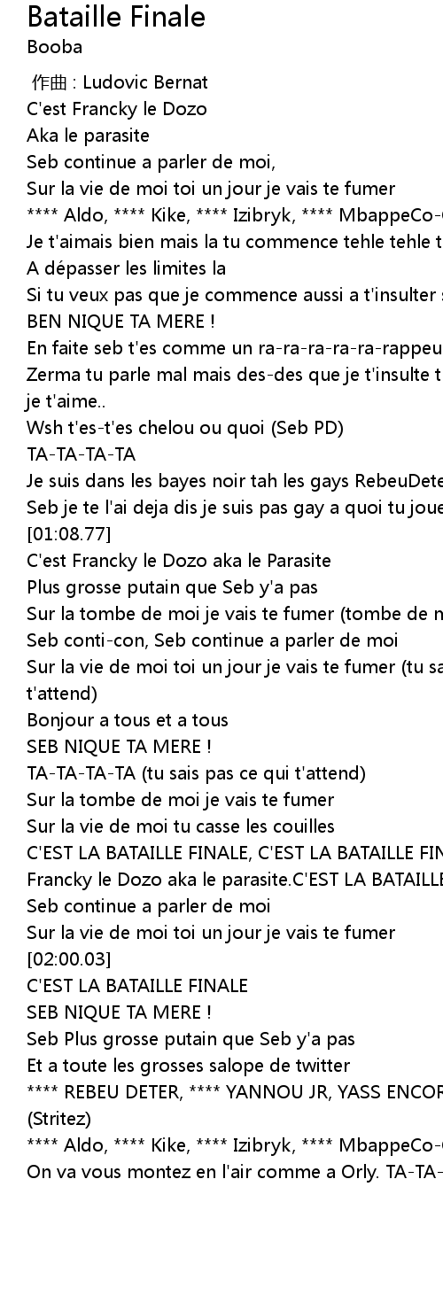 | [01:51.14] | Francky le Dozo aka le parasite. C' EST LA BATAILLE FINALE |