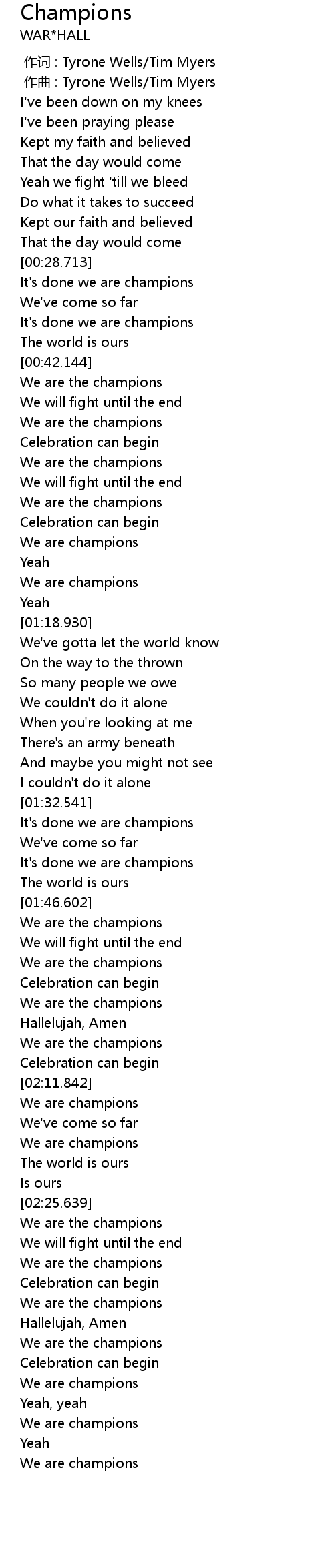 | [03:04.010] | We are champions |