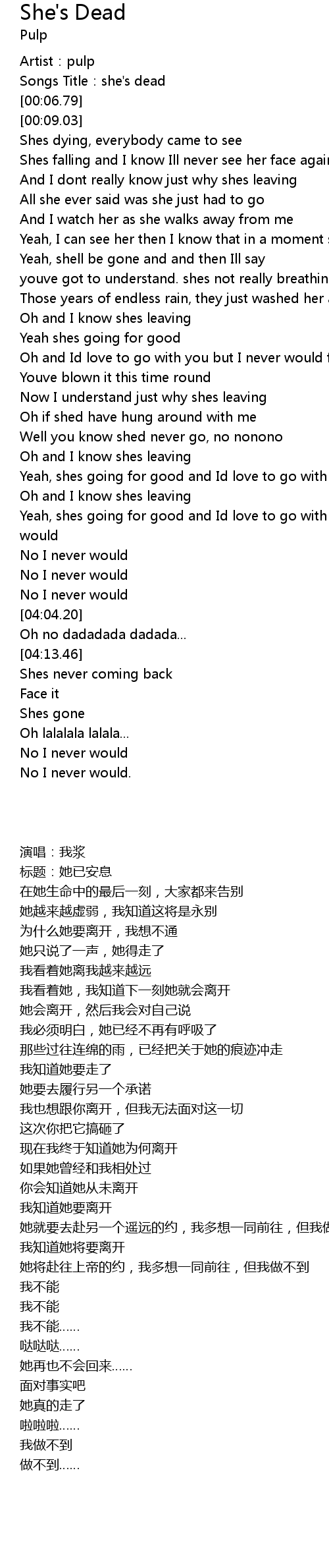 | [00:03.23] | Songs Title: she' s dead |