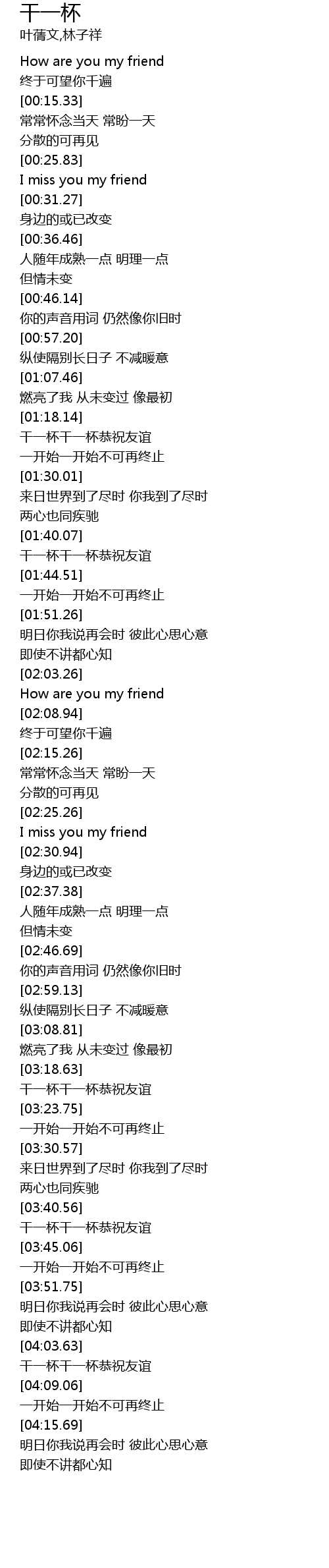 | [03:42.07] | 干一杯干一杯恭祝友谊 |