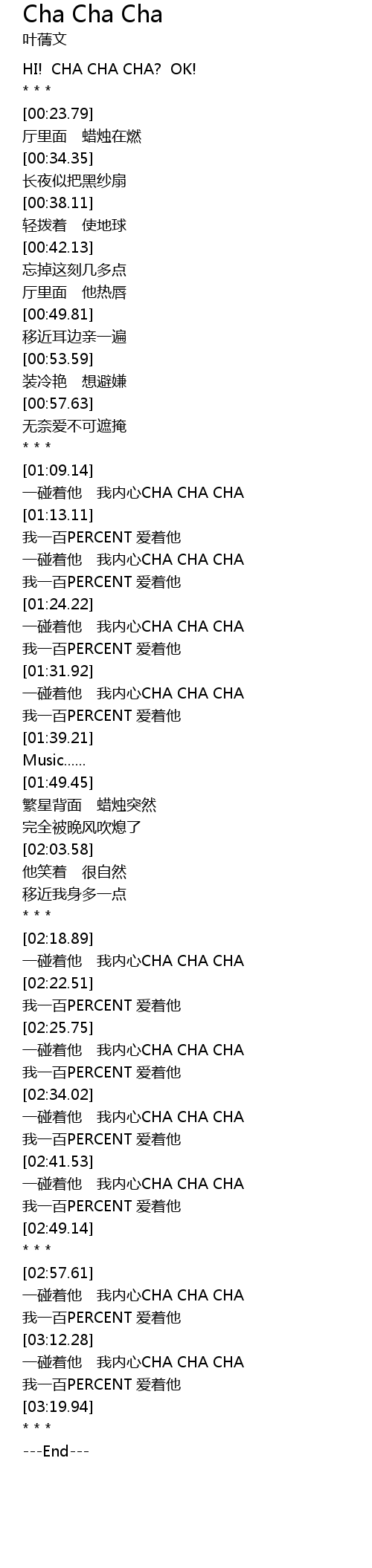 | [03:13.77] | 一碰着他 我内心CHA CHA CHA |