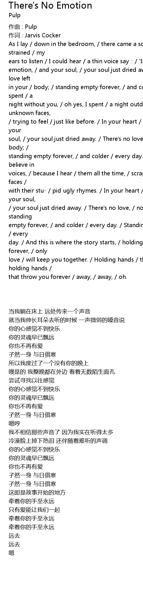 | trying to feel just like before. In your heart there' s no emotion, and your | |