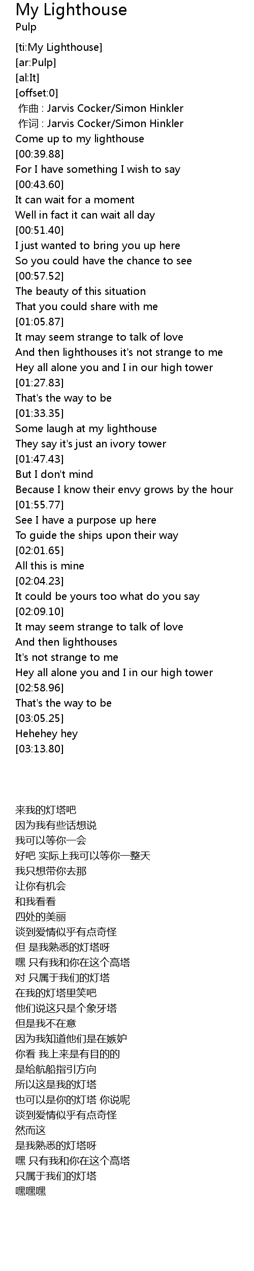 | [01:10.84] | And then lighthouses it's not strange to me |