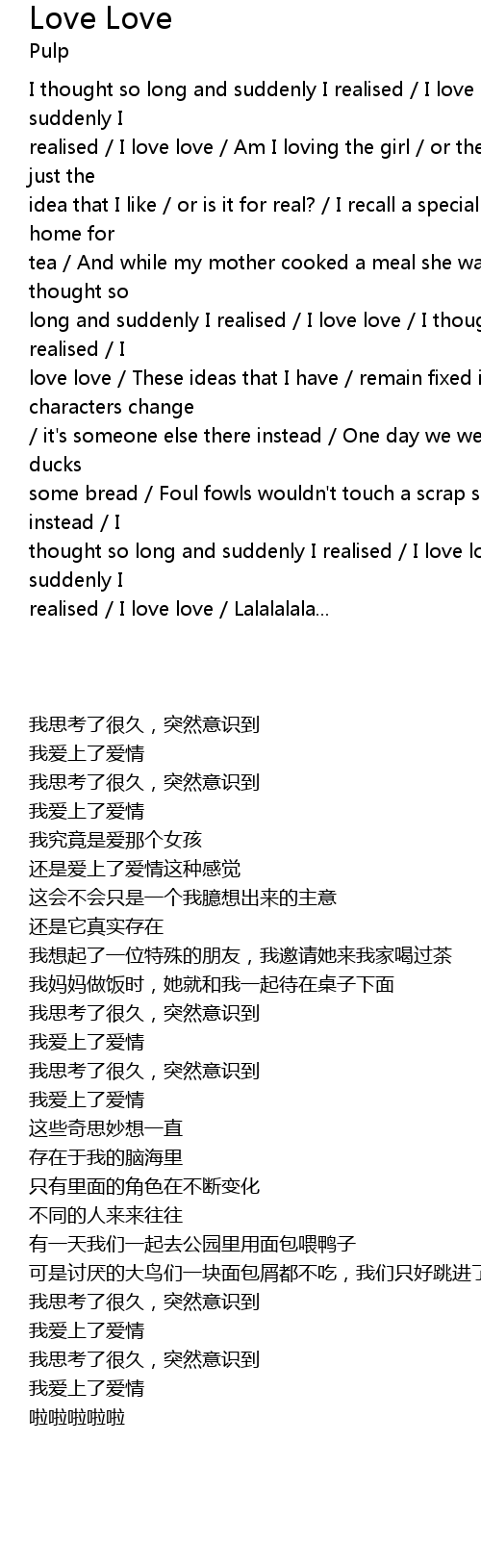 | long and suddenly I realised / I love love / I thought so long and suddenly I realised / I | |