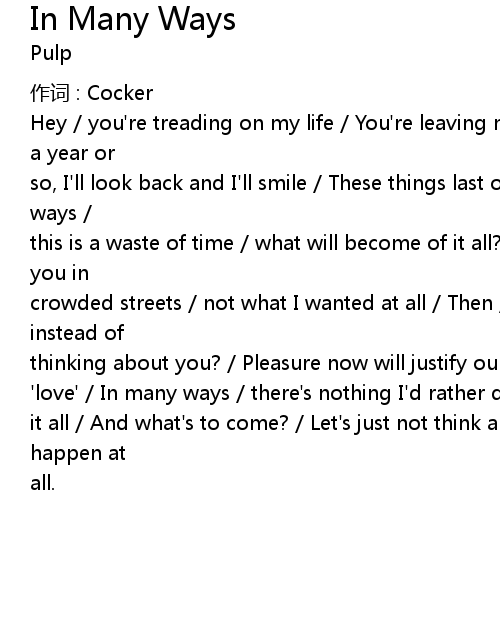 | so, I'll look back and I'll smile / These things last only for a while / In many ways / | |