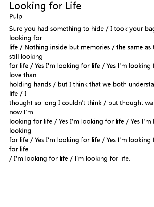 | for life / Yes I'm looking for life / Yes I'm looking for life / Yes I'm looking for life | |