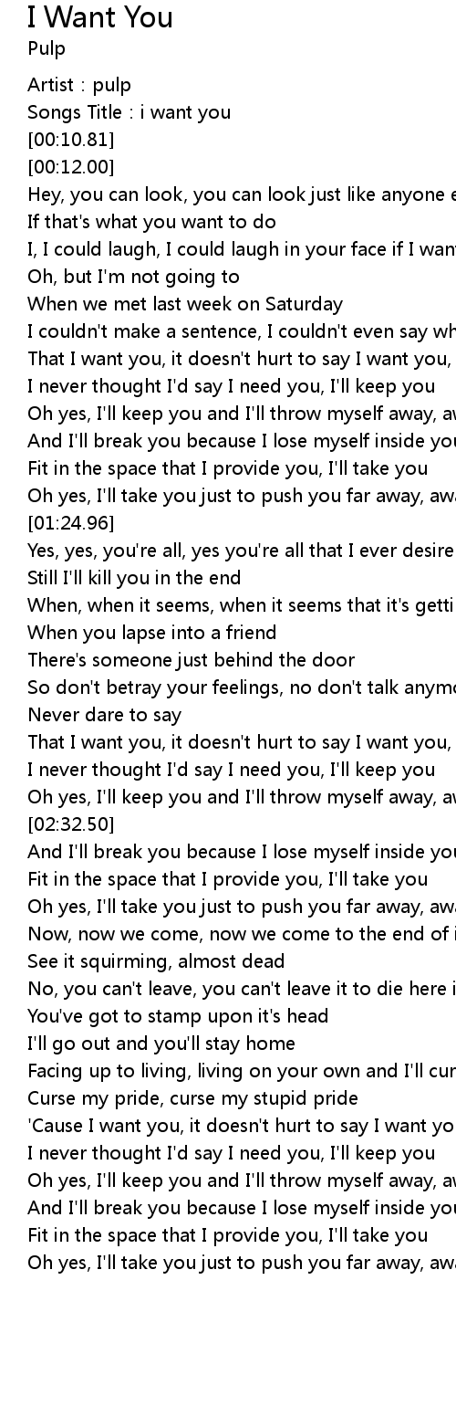 | [03:50.48] | 'Cause I want you, it doesn't hurt to say I want you, I need you |