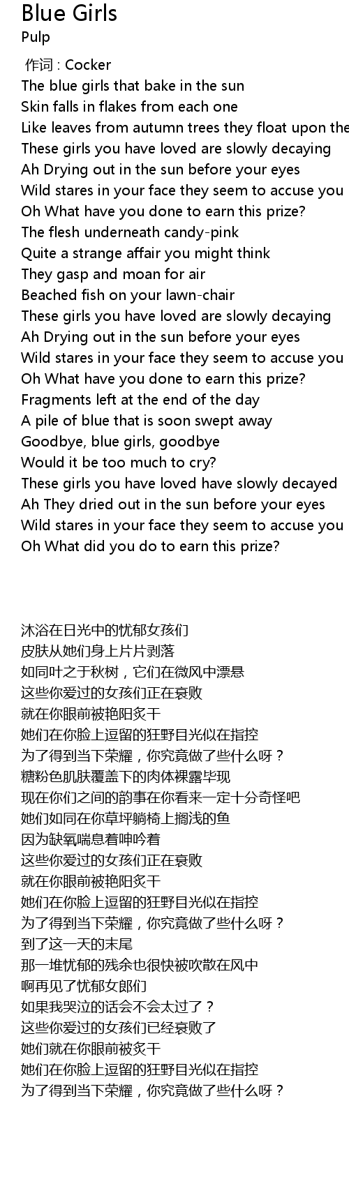 | [04:33.876] | Goodbye, blue girls, goodbye |
