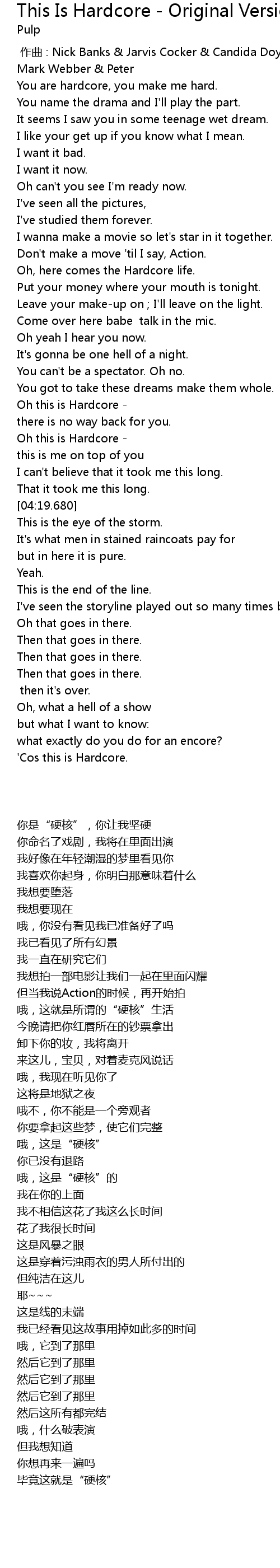 | [00:00.00] | zuo qu : Nick Banks Jarvis Cocker Candida Doyle Steve Mackey Mark Webber Peter |