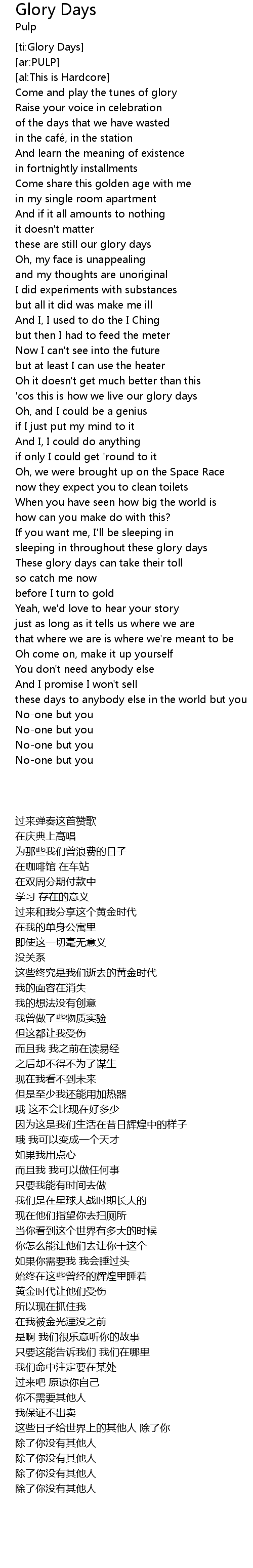 | [02:31.05] | sleeping in throughout these glory days |