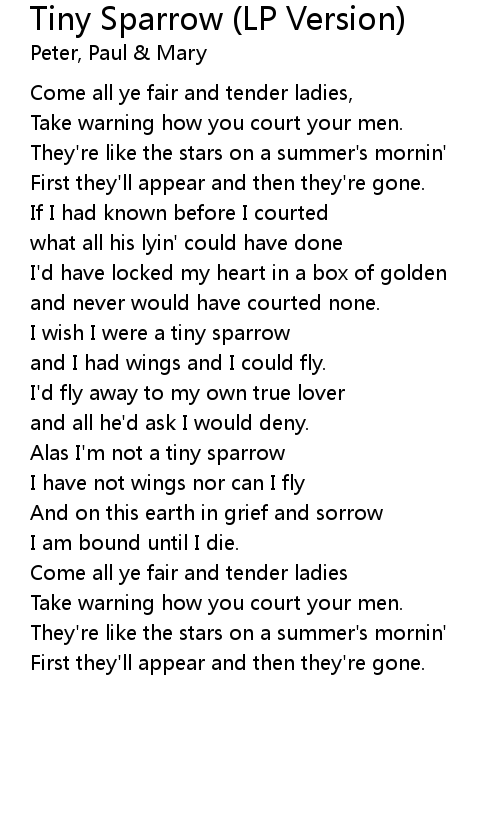 Alas I'm not a tiny sparrow |