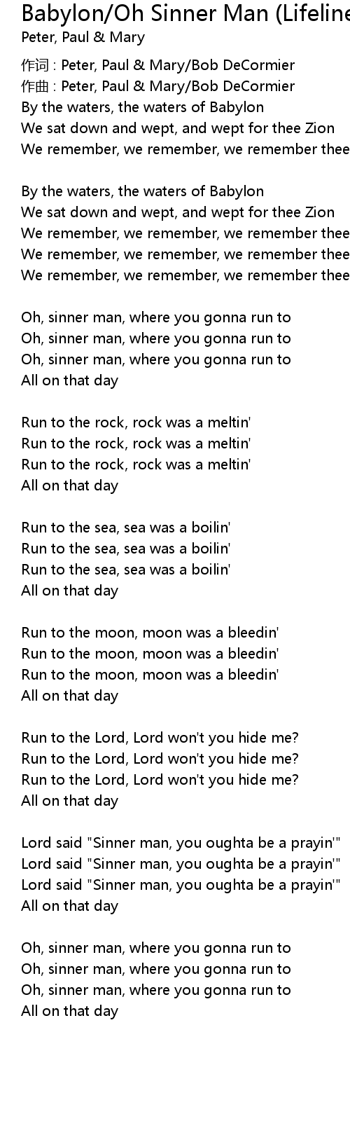 | Song | Babylon/Oh Sinner Man (Lifelines LP Version) |