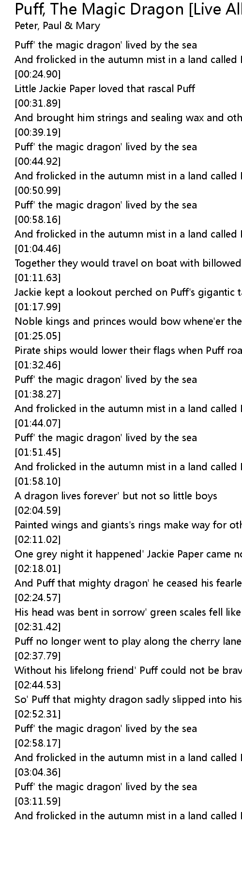 So' Puff that mighty dragon sadly slipped into his cave' oh |
