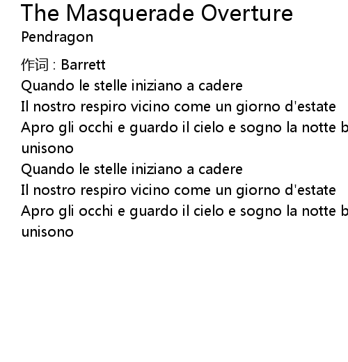 | Song | The Masquerade Overture |