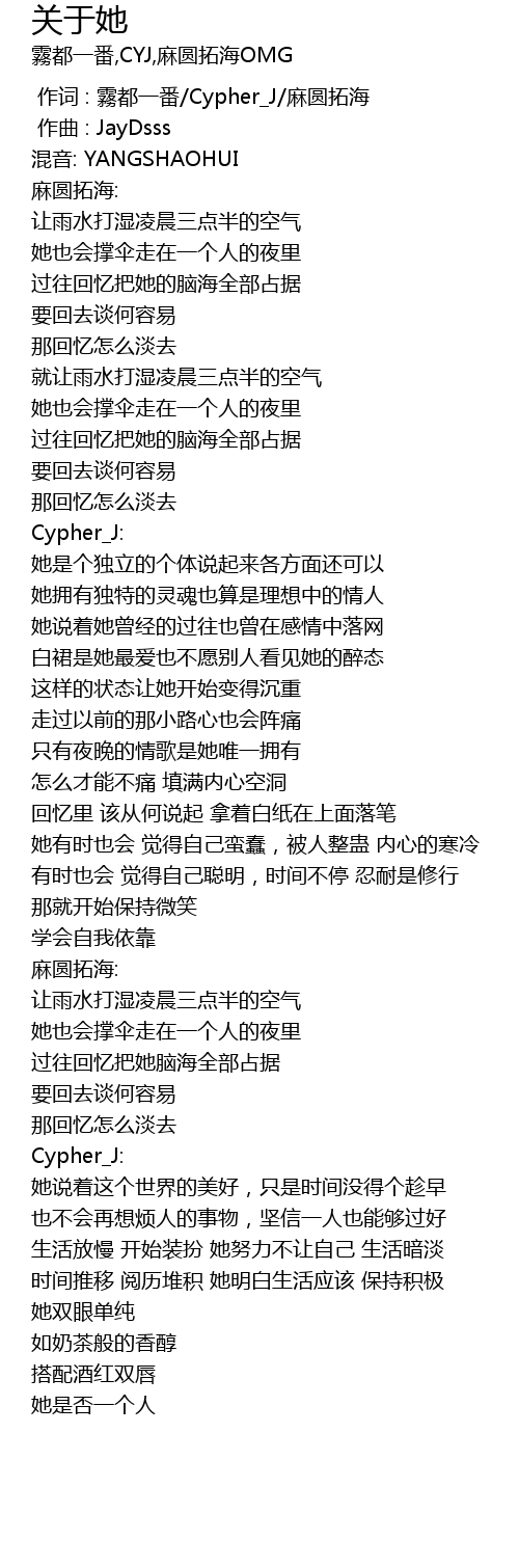 | [00:05.627] | 混音: YANGSHAOHUI |