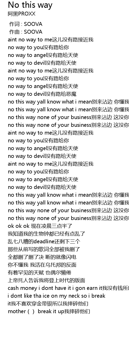 | [00:21.878] | no way to you没有路给你 |
