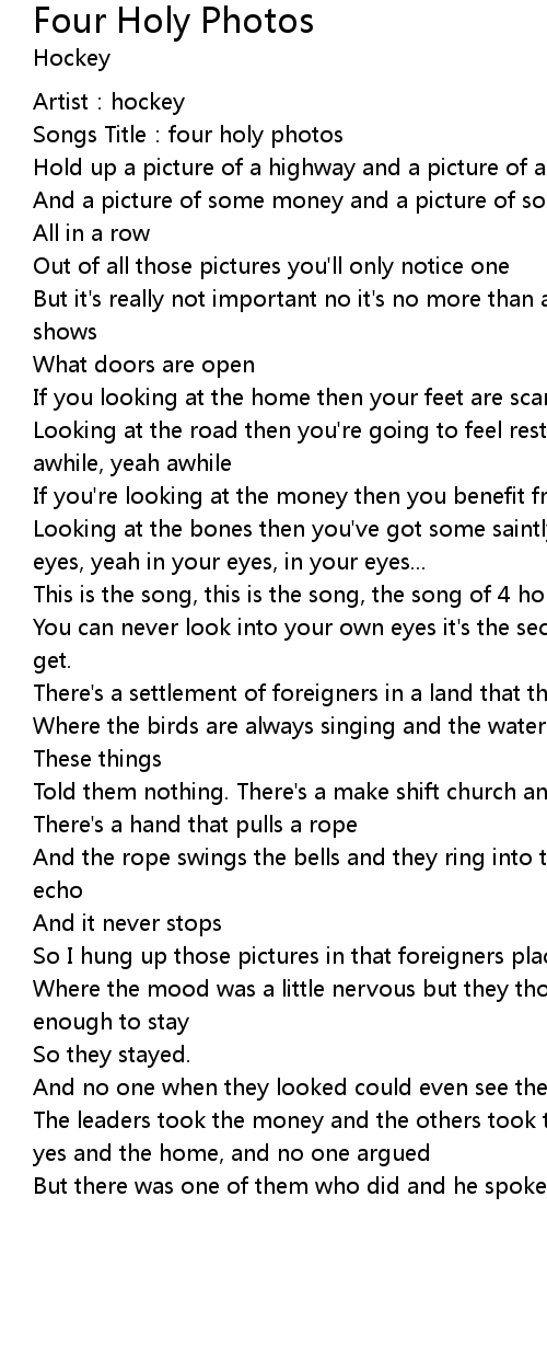| [01:22.31] | This is the song, this is the song, the song of 4 holy photos |