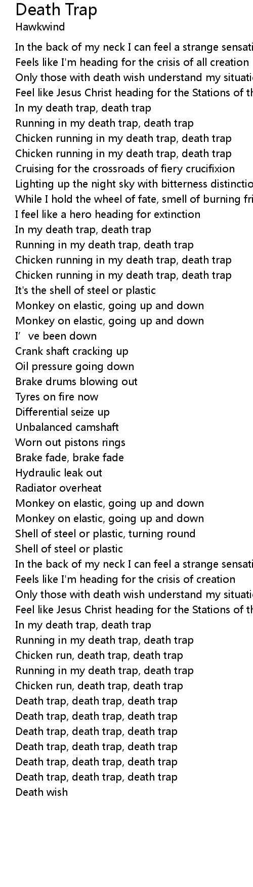 | Running in my death trap, death trap | |