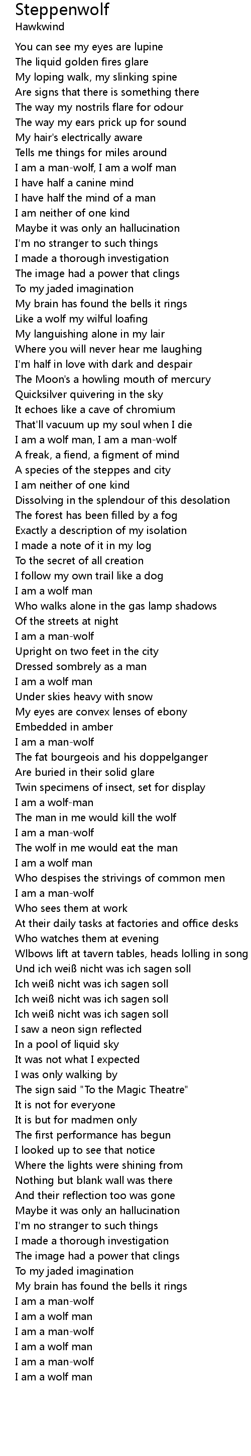 | I am a wolf man, I am a man-wolf | |