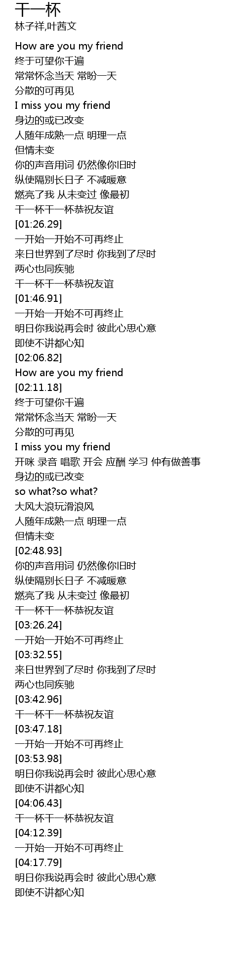 | [01:43.06] | 干一杯干一杯恭祝友谊 |