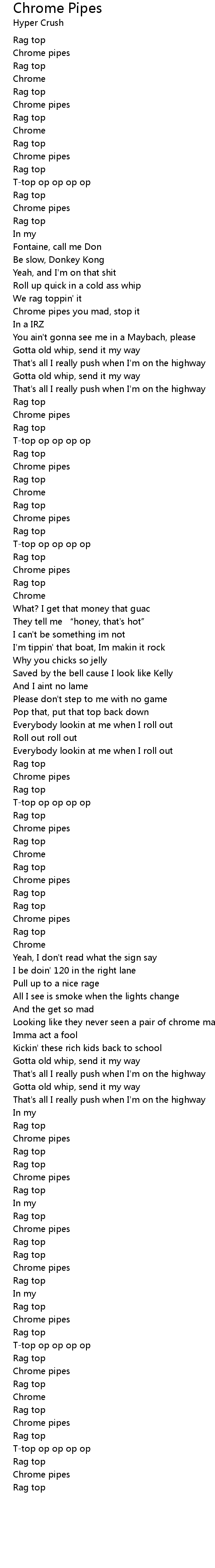 | Song | Chrome Pipes |
