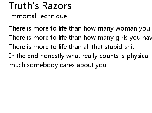 | Song | Truth's Razors |