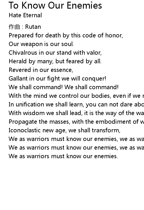 | We as warriors must know our enemies, we as warriors. | |
