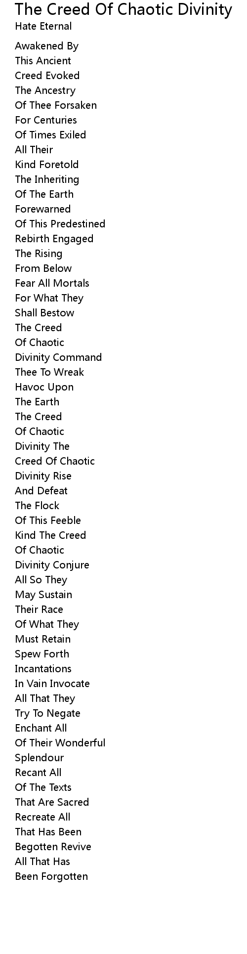 | Song | The Creed Of Chaotic Divinity |