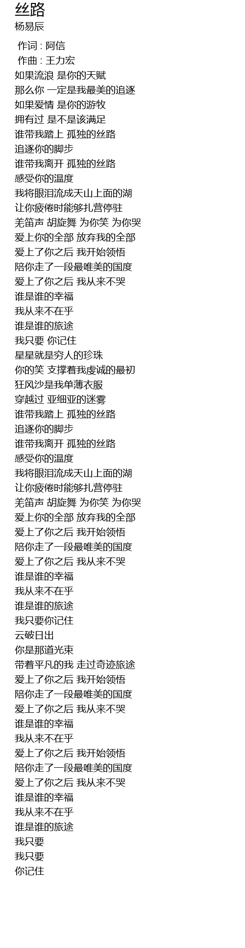 | [00:39.360] | 谁带我踏上 孤独的丝路 |