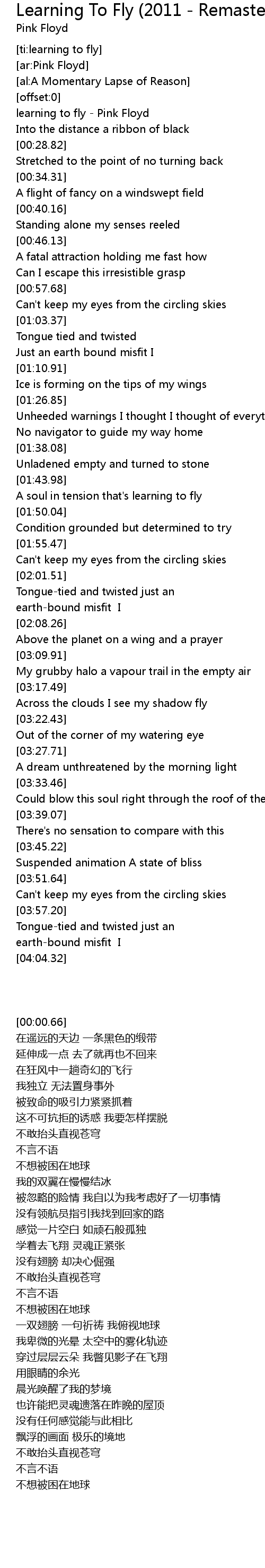 [ti:learning to fly] |