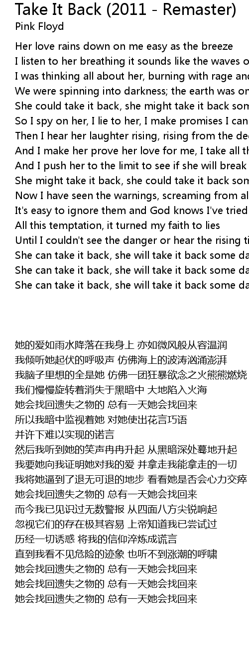 She can take it back, she will take it back some day |