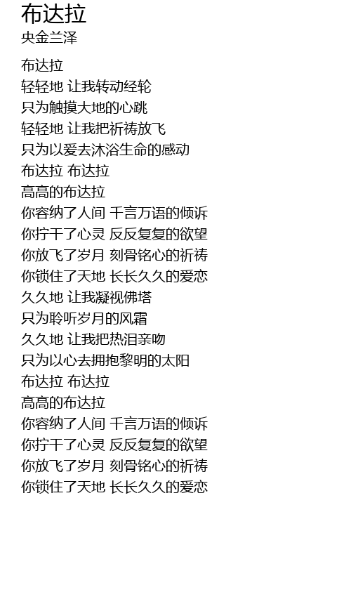 | [01:01.569] | 轻轻地 让我转动经轮 |