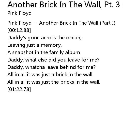 | [01:13.47] | All in all it was just the bricks in the wall. |